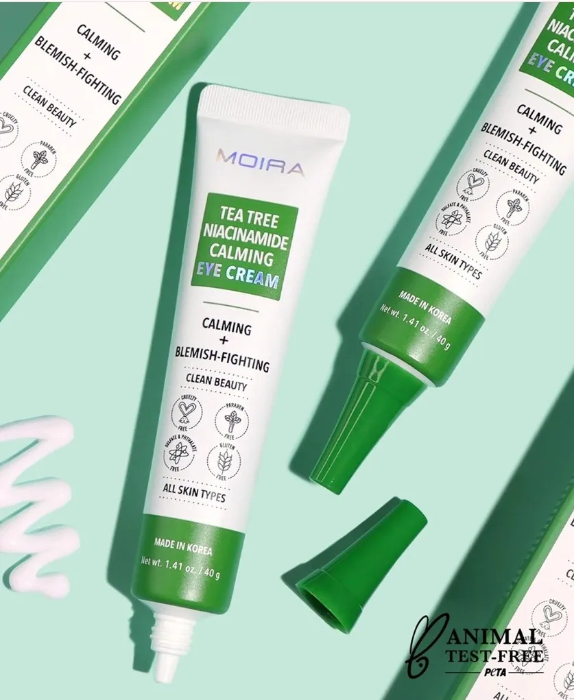 MOIRA Tea Tree Niacinamide Calming Eye Cream es una crema ligera que se aplica debajo de los ojos y que calma, restaura y equilibra la tez. Infusión de extracto de árbol de té y niacinamida para una piel saludable y radiante. Suave para uso diario en el área de los ojos.